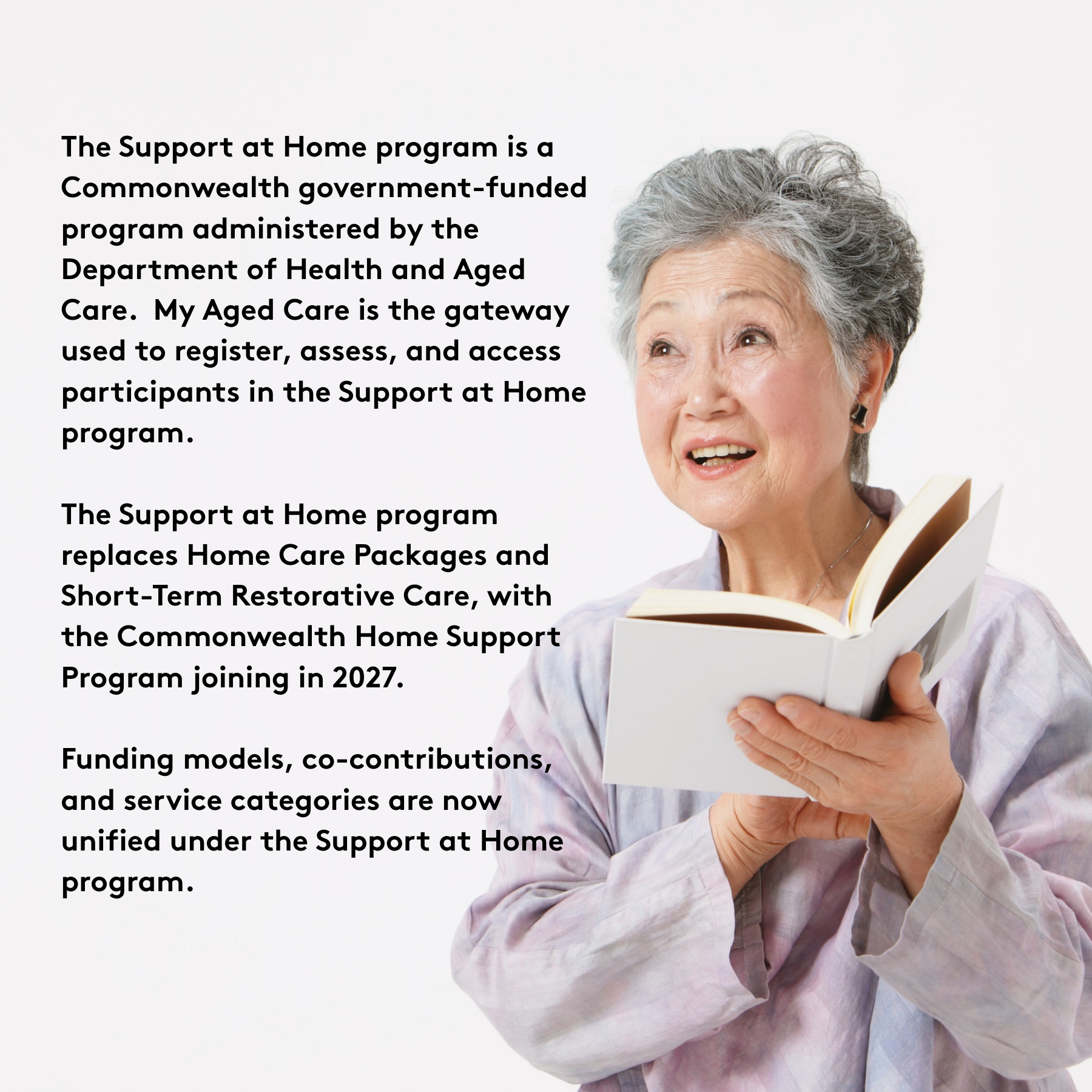 Support at Home is a government funded program to help older people remain at home as they age by delivering coordinated care and services to meet their assessed ageing related care needs. Music therapy is funded as an allied health and therapeutic service within the Support at Home program.